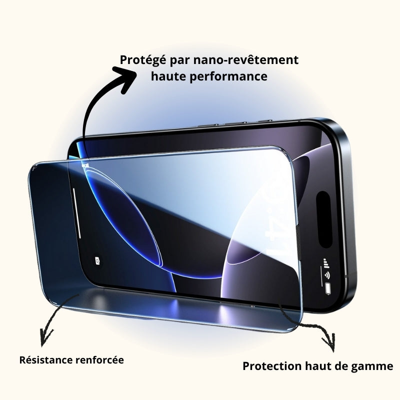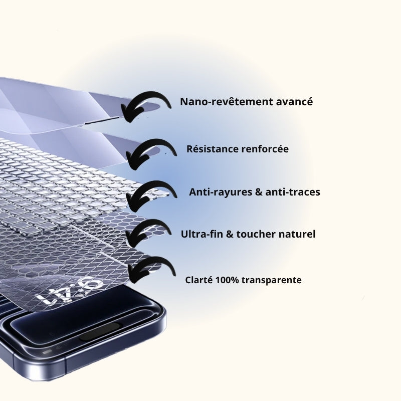 Découvrez une protection d’écran nouvelle génération, renforcée par un nano-revêtement technologique offrant une résistance exceptionnelle aux rayures, à l’eau et aux traces de doigts. Grâce à sa couche invisible appliquée au niveau moléculaire, l’écran reste parfaitement lisse, clair et propre, même après une utilisation intensive.